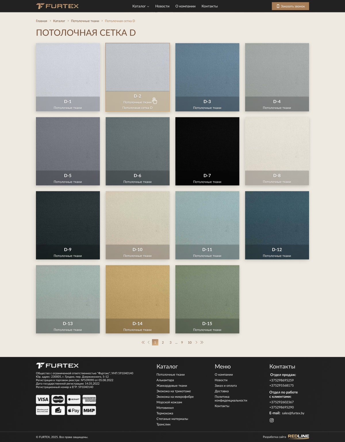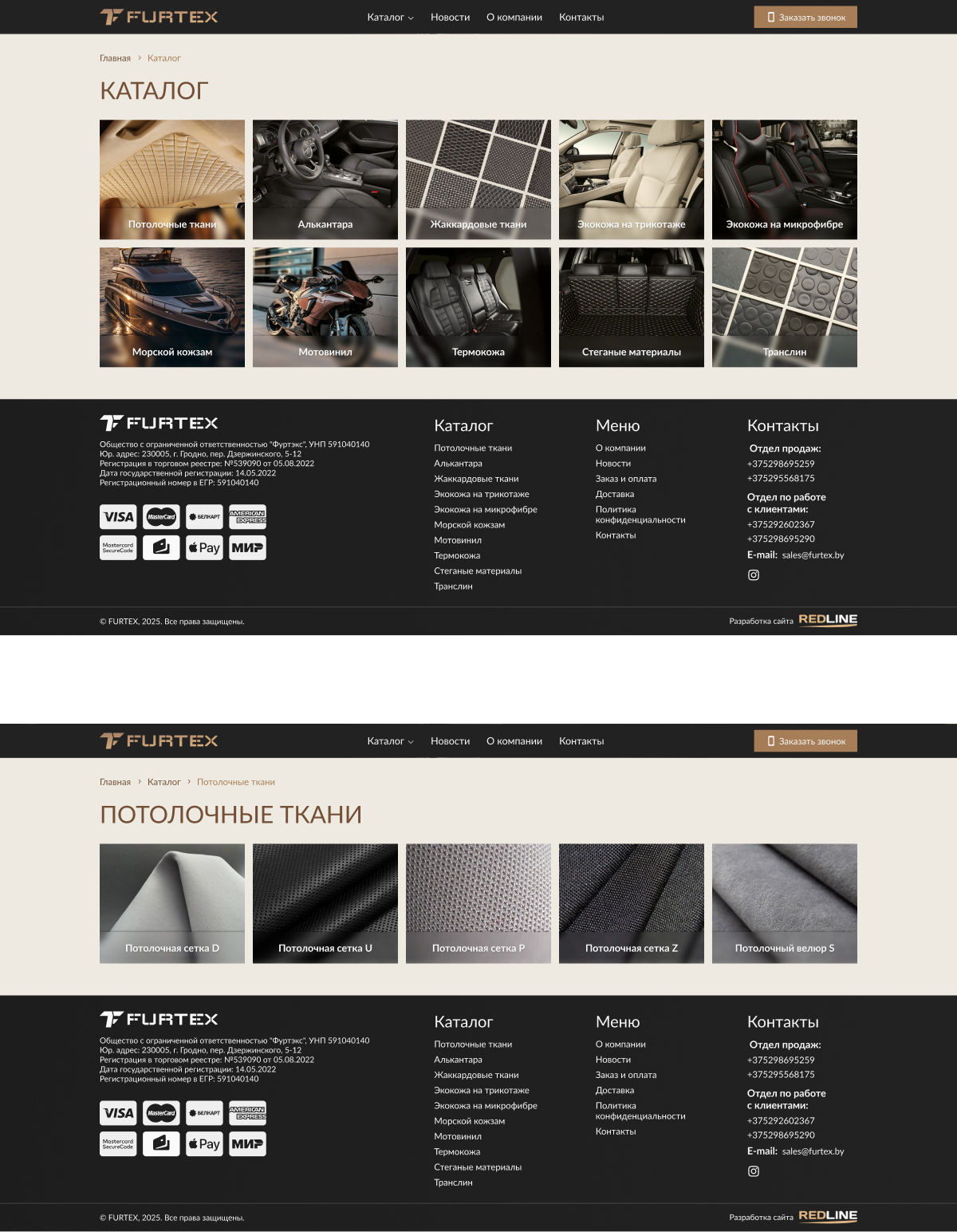 Сайт-каталог поставщика автомобильных тканей