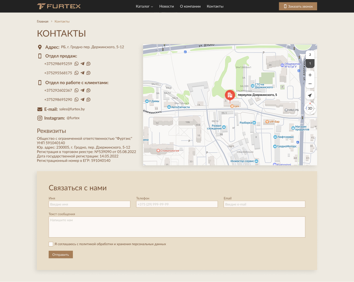 Сайт разработан на WordPress с удобной системой администрирования. Реализована гибкая структура каталога, позволяющая оперативно управлять контентом, ассортиментом и характеристиками продукции.
