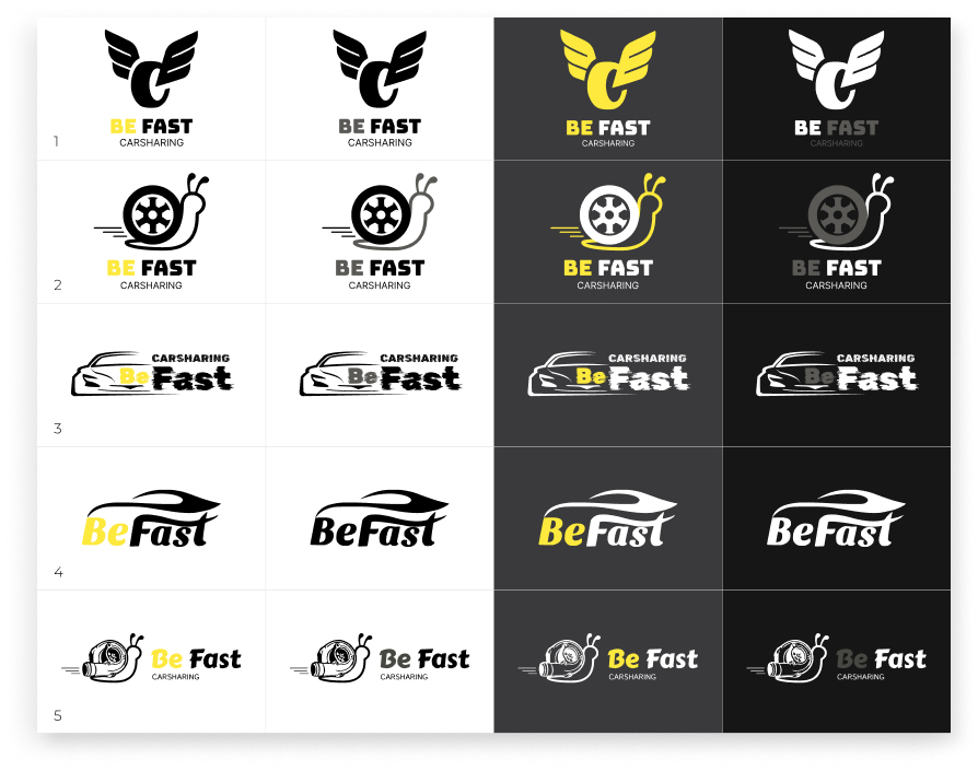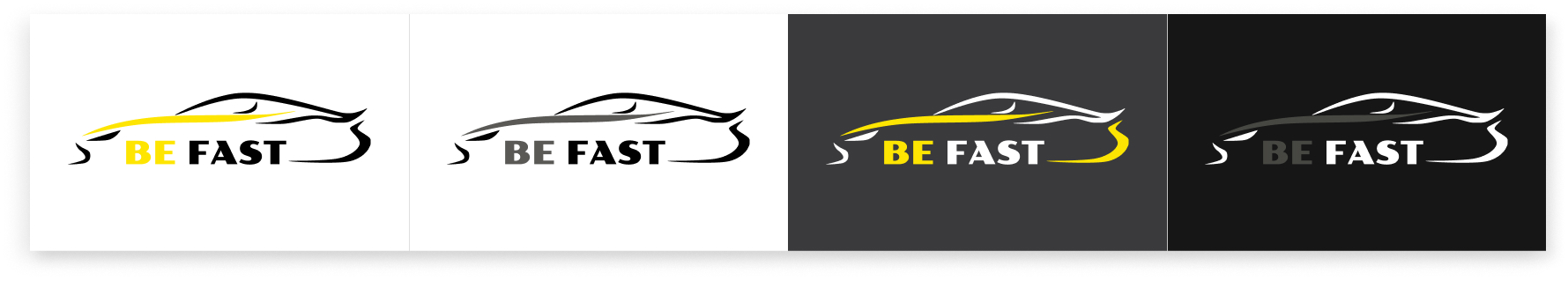 В результате проделанной работы был создан современный, динамичный и легко узнаваемый логотип, отражающий суть бренда BeFast — скорость, удобство и позитивный характер сервиса. Финальный вариант с силуэтом автомобиля стал гармоничным сочетанием фирменного жёлтого цвета, лаконичной формы и выразительной символики.